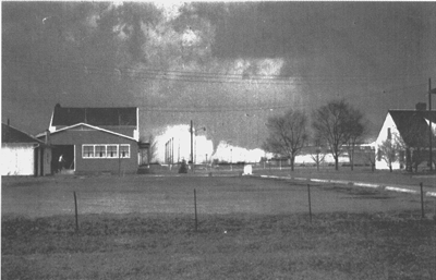 ADDENDUM: Credit for the photos goes to Willis Haenes. Many thanks to Jim Stewart for providing the name of the photographer. Click on “Comments” below to read Jim”s message. The bottom photo appeared in a groundbreaking paper by Dr. Ted Fujita on the Palm Sunday Outbreak. According to a map by Fujita, the view is from Bremen, Indiana, looking west toward just north of LaPaz.