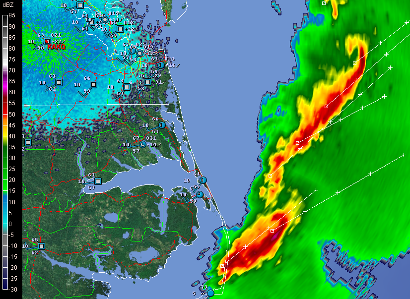 When it comes to armchair chasing, I’m moderate in my habits. If I can’t actually be out chasing, I often opt for a more constructive use of my time than watching the radar and gnawing my knuckles. This time, though, I couldn’t help watching. At first the line of storms looked mean but not terribly alarming. As the storms headed east, though, they began to organize and strengthen, and circulations began to show on radar. Strong circulations, a whole line of them, stretching from northern South Carolina up into Maryland and Virginia. And the tornado reports began filtering in. These storms didn’t merely appear to be impacting towns–they were.