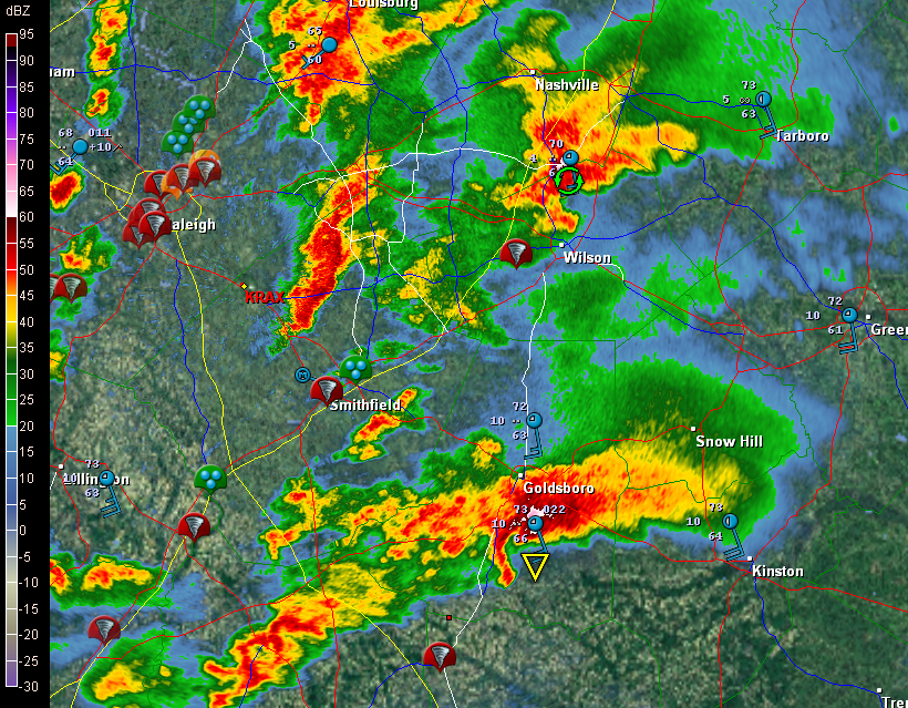 But I digress. Here are a few GR2AE radar grabs of the North Carolina supercells. Storm motions were to the northeast. The rest tells its own story if you know what you’re looking at.