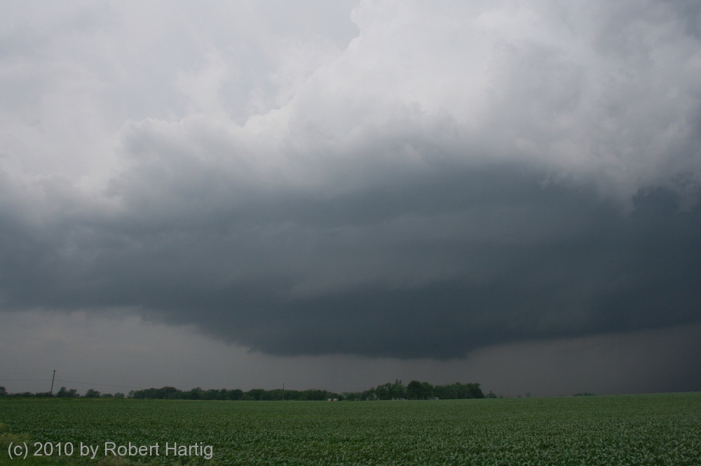Catching CR 115 at Goodfield, we headed north to Eureka, then continued east along US 24. We were still tracking with the storm, which was slowly weakening as the next tornadic supercell to its north began to dominate. It was still no pansy-weight, though, and at Chatsworth, in a final show of strength, it spun down a brief but well-defined rope tornado.