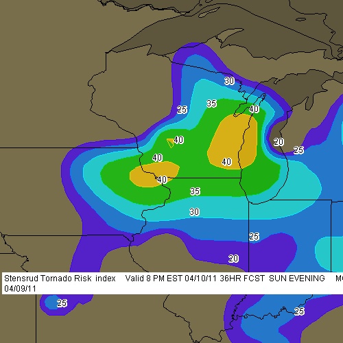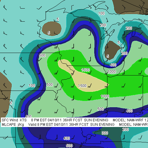 Tomorrow looks to be a big severe weather day in the upper Midwest and Great Lakes. It will also be my first storm chase of 2011, and with departure time less than 24 hours away, I’ve been scrutinizing the forecast maps, mainly the SREF and NAM.