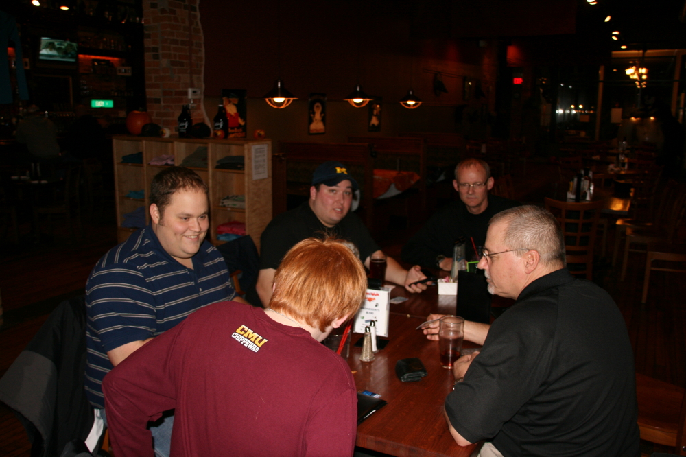 Truthfully, there is no official Michigan Storm Chasing Contingent. I made up the name. Membership dues have not been levied and cards have not been issued. The whole notion of a Michigan Storm Chasing Contingent is something of an oxymoron to begin with. Nevertheless, most of these guys have had a pretty impressive year, with plenty of miles logged and tornadoes observed. The sorriest mug in the lot was me, but I won’t go into that; 2011 is almost over now, and I’m done whining. The big thing is, Ben Holcomb was visiting from Oklahoma, and that seemed like a good reason for all of us to get together and hang out for the evening.